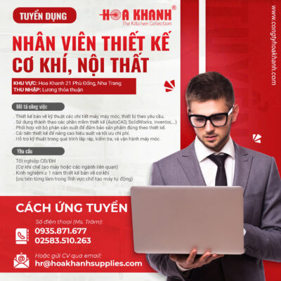 Công ty Hoa Khanh hiện đang mở rộng đội ngũ nhân sự nhằm phục vụ nhu cầu phát triển các dự án bếp công nghiệp, nhà hàng, khách sạn và resort trên toàn quốc.