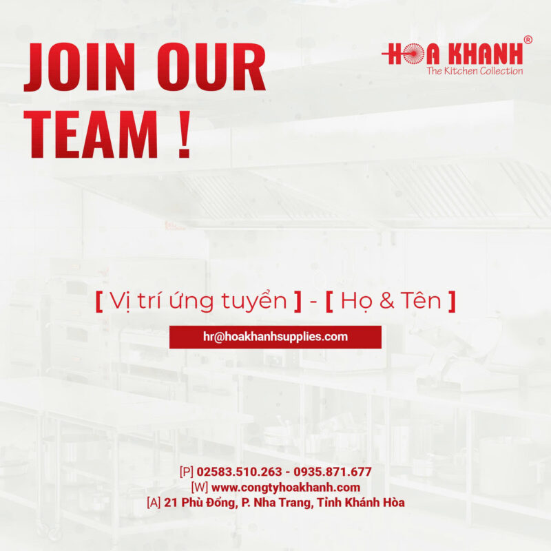 Nếu bạn đang tìm kiếm một môi trường làm việc chuyên nghiệp, ổn định và có cơ hội phát triển lâu dài trong lĩnh vực thiết bị bếp công nghiệp, đây là cơ hội phù hợp để gia nhập đội ngũ Hoa Khanh.